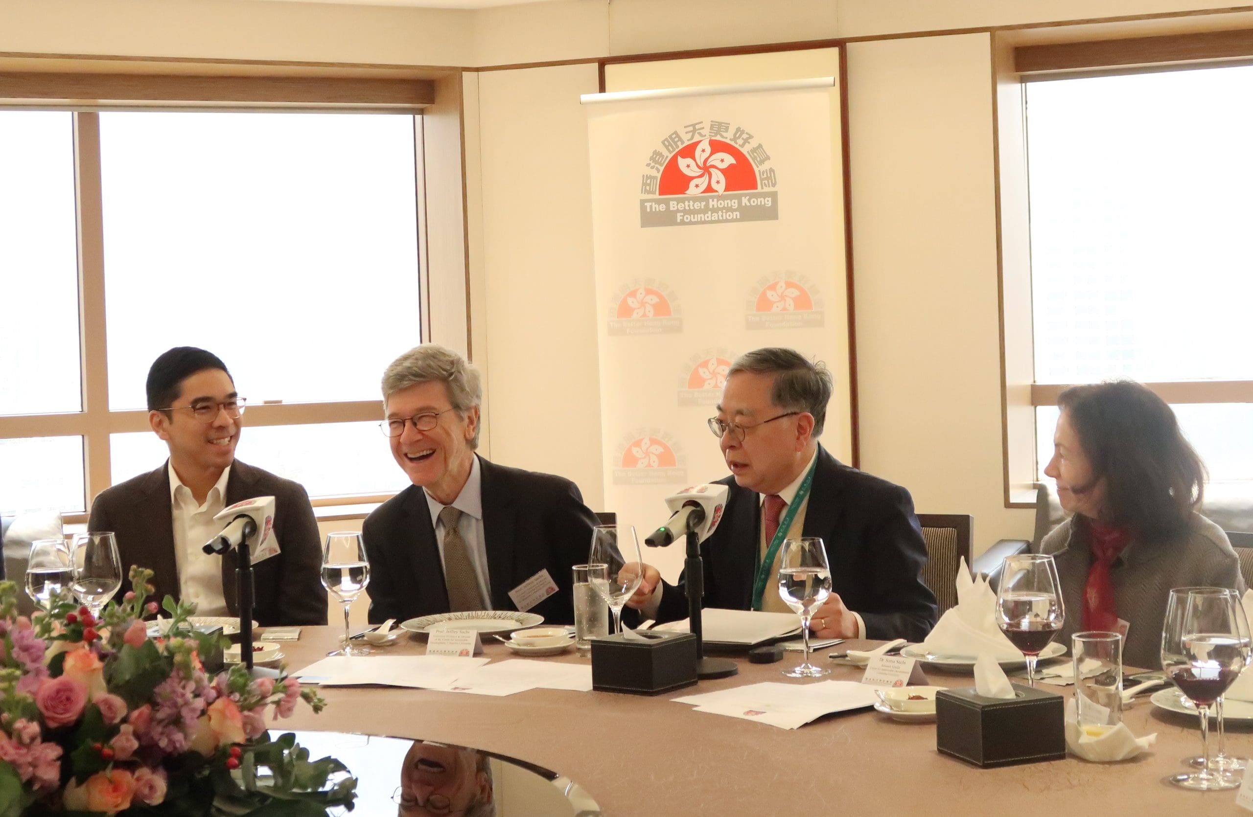 Chaired by the Foundation’s Executive Committee Chairman Ronnie Chan, Trustee Adriel Chan; Corporate Sponsor Roy Chung; Council Members Joseph Yu, Philip Ma, Diana Chou, Y K Chan, Lee Yuen-hong, Anson Chan, Zhong Xiaofeng, Nathan Lee, Eugene Cheung, Catherine Leung and Ronald Chan; Executive Director Karen Tang; and guest Douglas Woo joined the luncheon. Prof. Sachs was accompanied by his wife Sonia Sachs and Philo Wang of UN SDSN on the trip to Hong Kong.