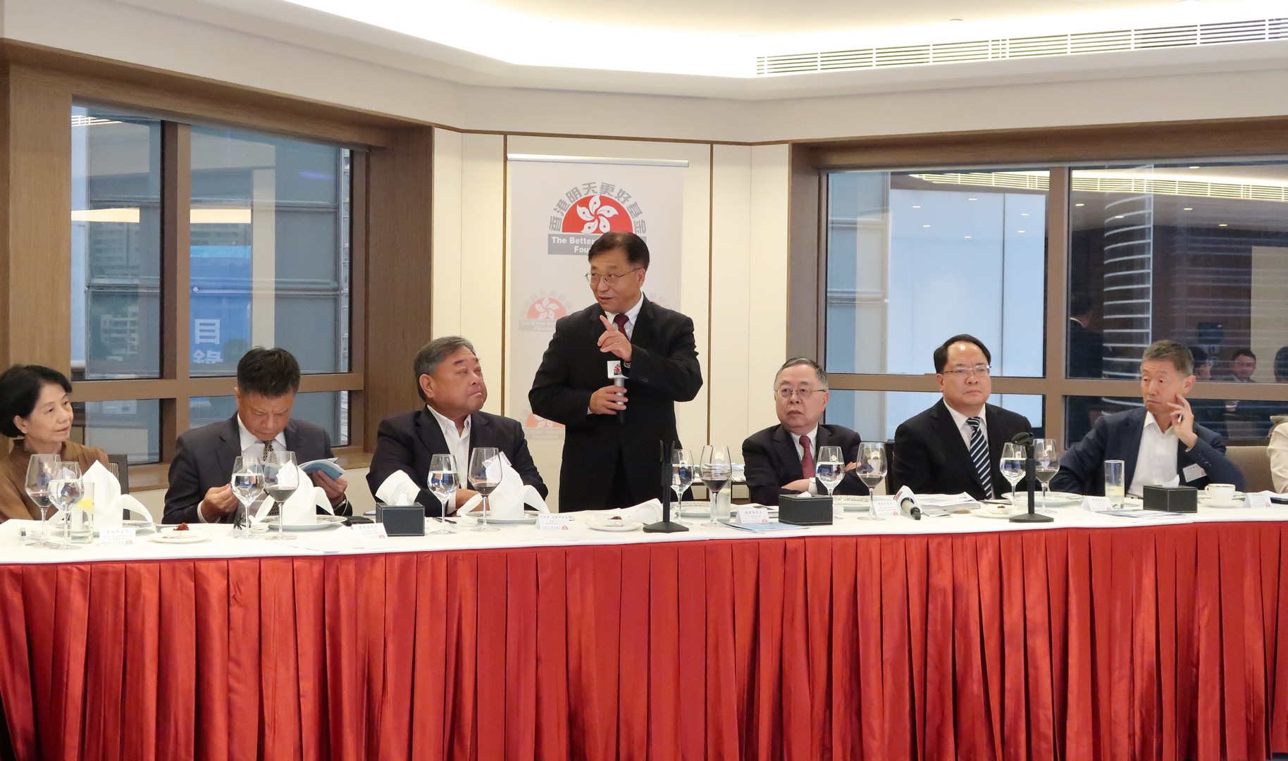 晚餐會由「基金」執行委員會主席陳啟宗主持,出席人士包括信託人邱達昌、謝中民代表李旭華及鄭志剛代表周哲,公司贊助人單偉建,理事邱詠筠、胡珠、陳明耀、陳炎光、彭一庭、區妙馨、史立德、羅正杰及張知予,及行政總裁鄧淑德。外交部駐港公署副特派員潘雲東、新公部主任黃景睿、政研室參贊秦宏及新公部三秘劉平陪同出席。